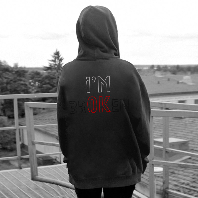 I'm Broken Letters Printed Women's Casual Pullover Hoodie