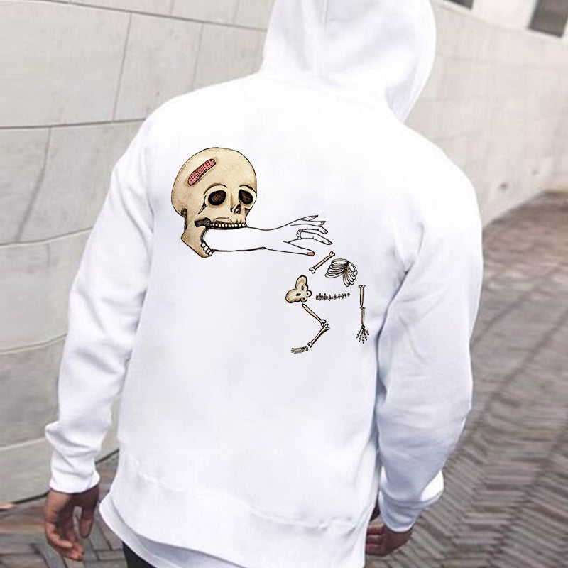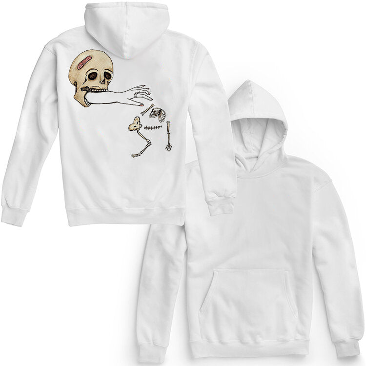Spooky Broken Skeleton Print Plain Design White Hoodie