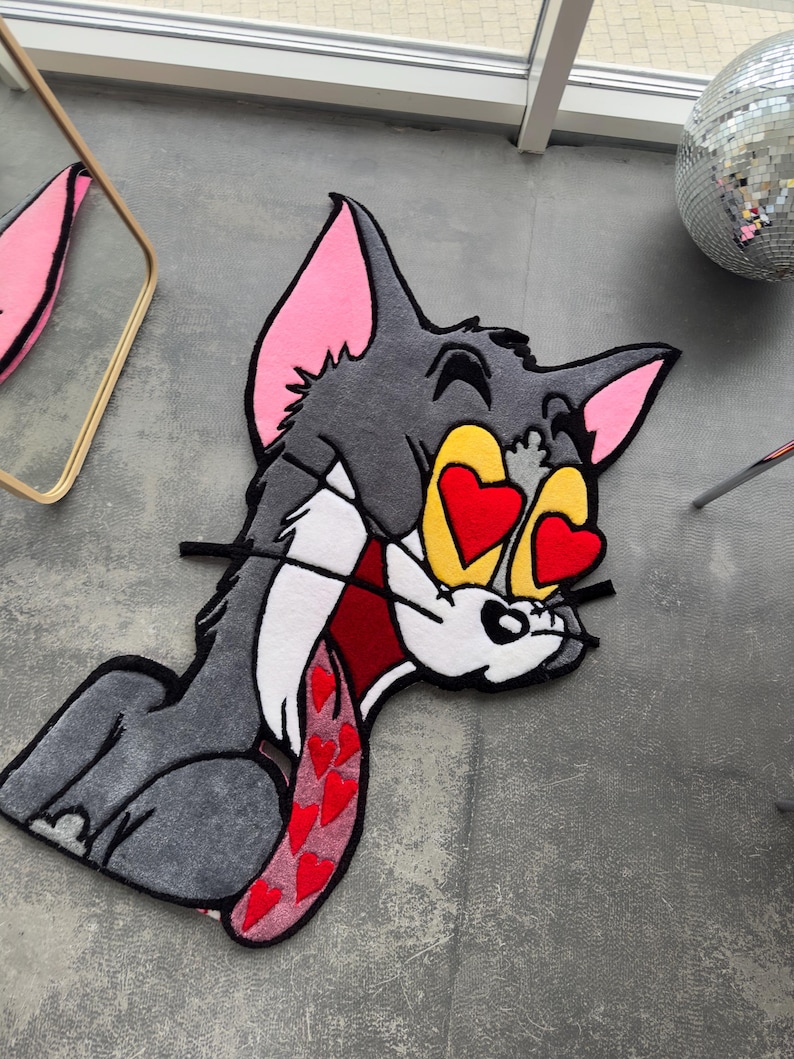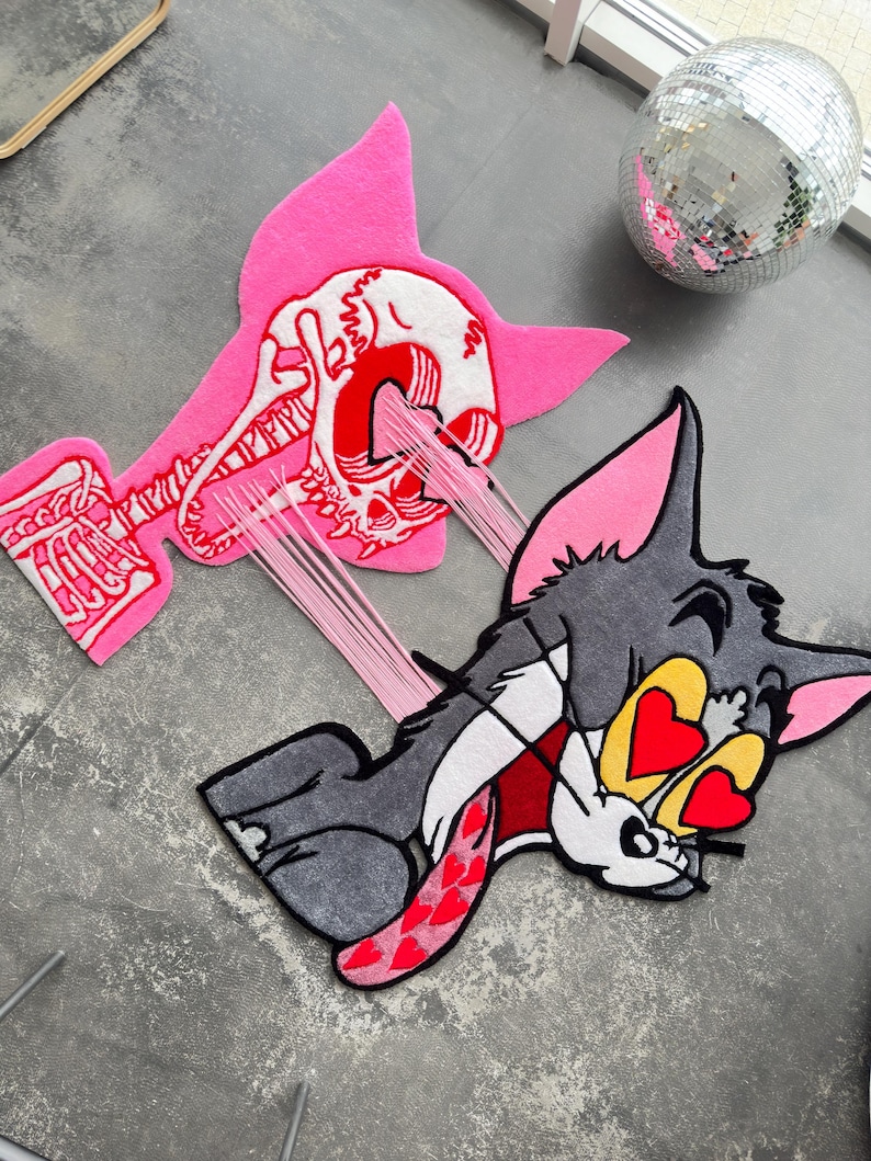 Cartoon Inspired Cat X-ray Skeleton Handmade Rug, Double Layered Tufted Rug.