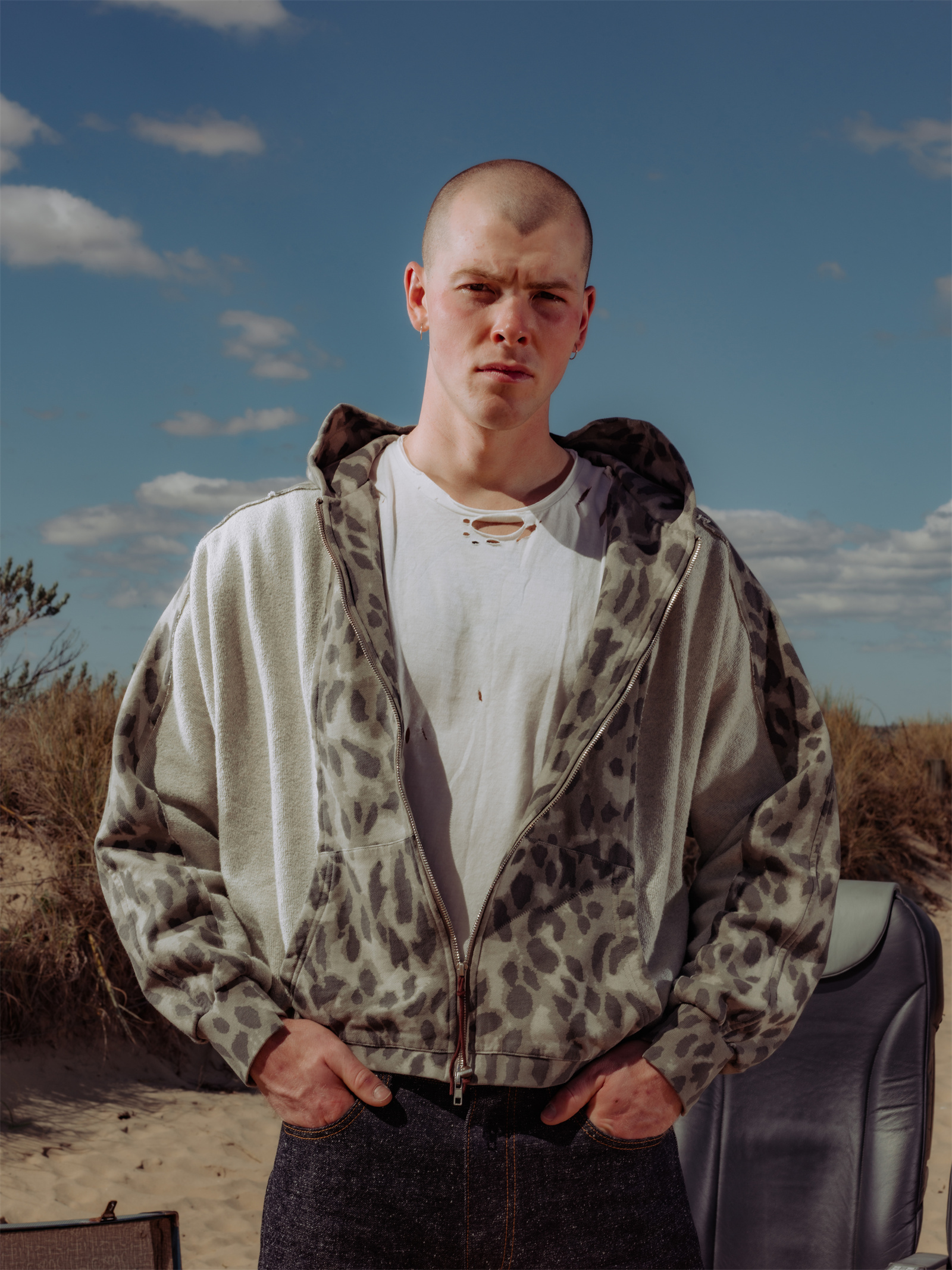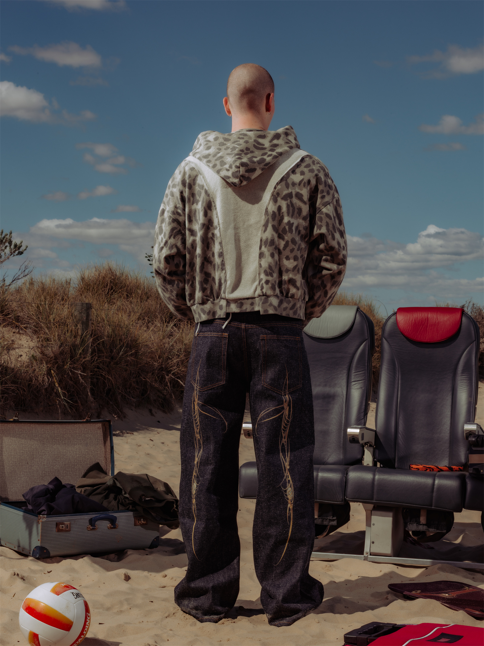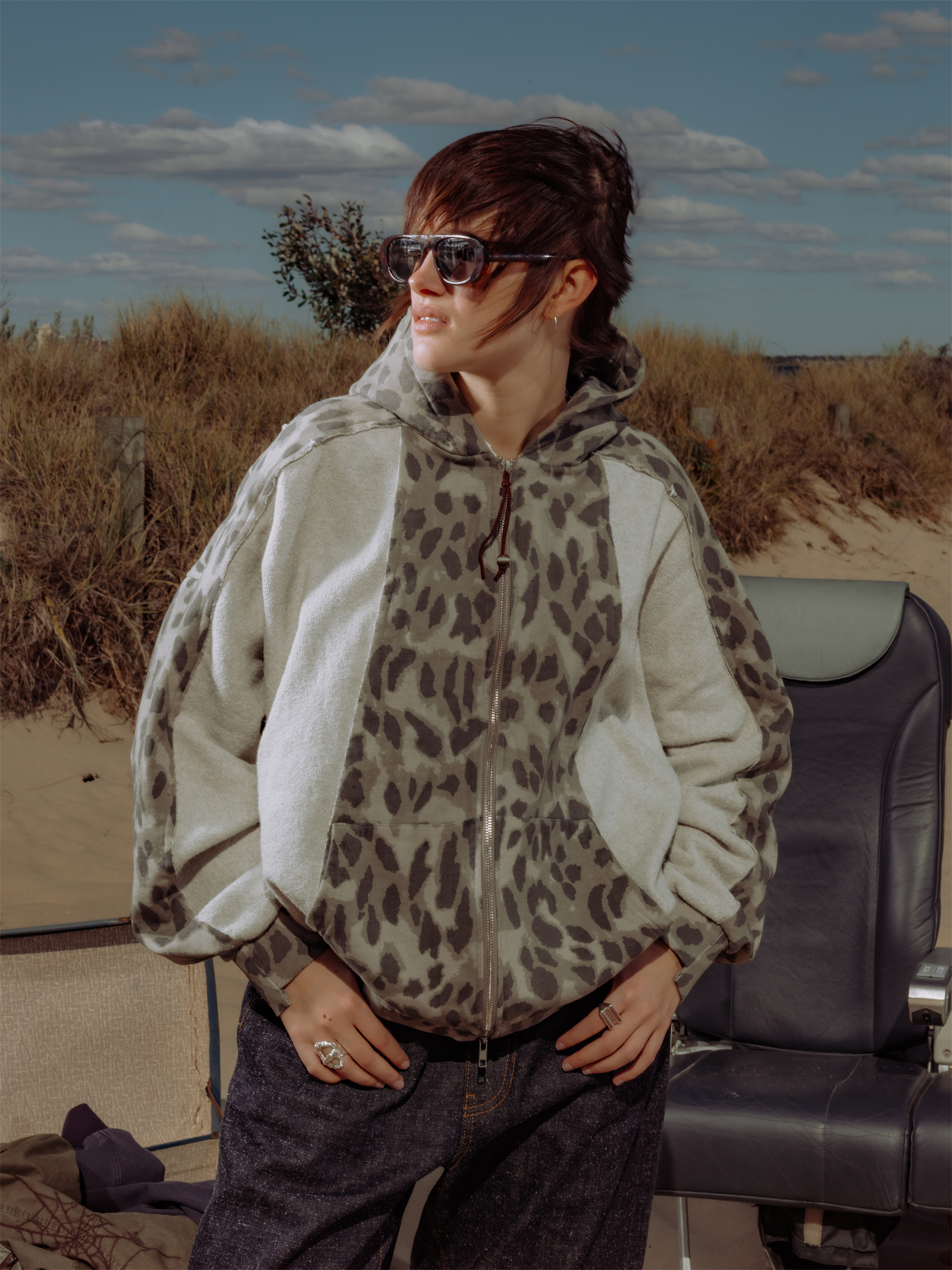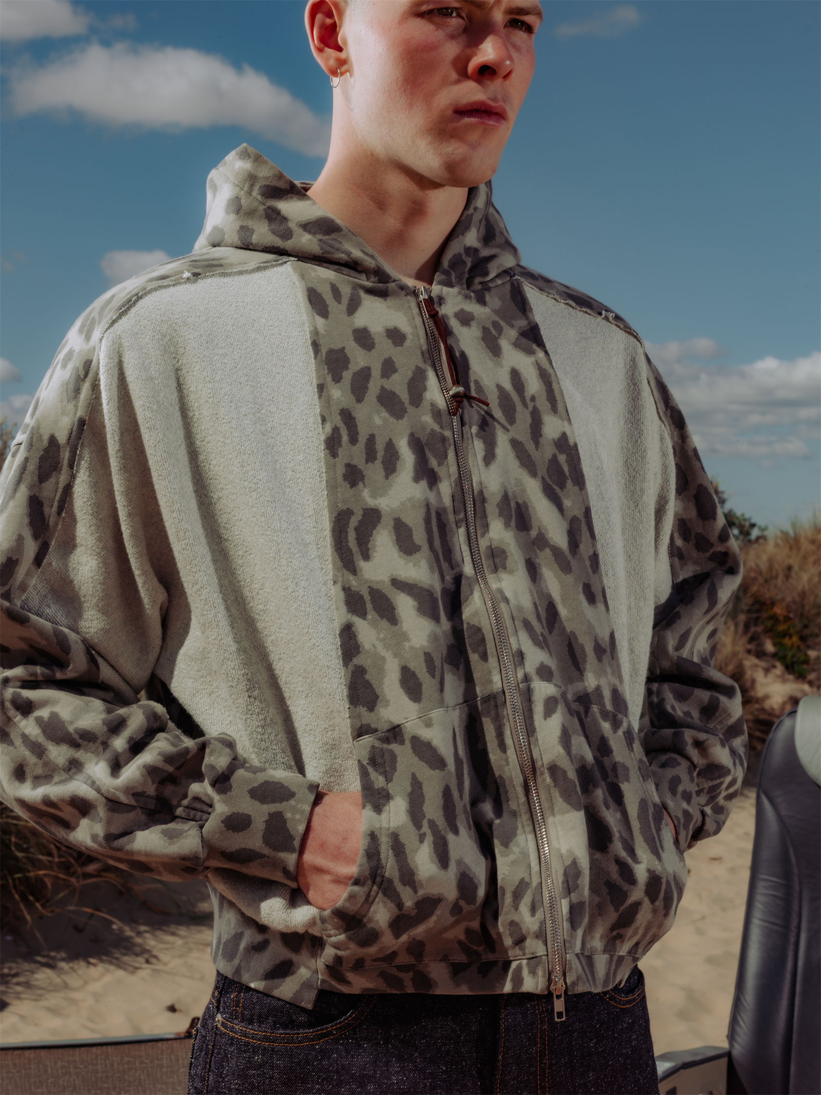 · Custom printed fabric spliced with Japanese loop-back fleece