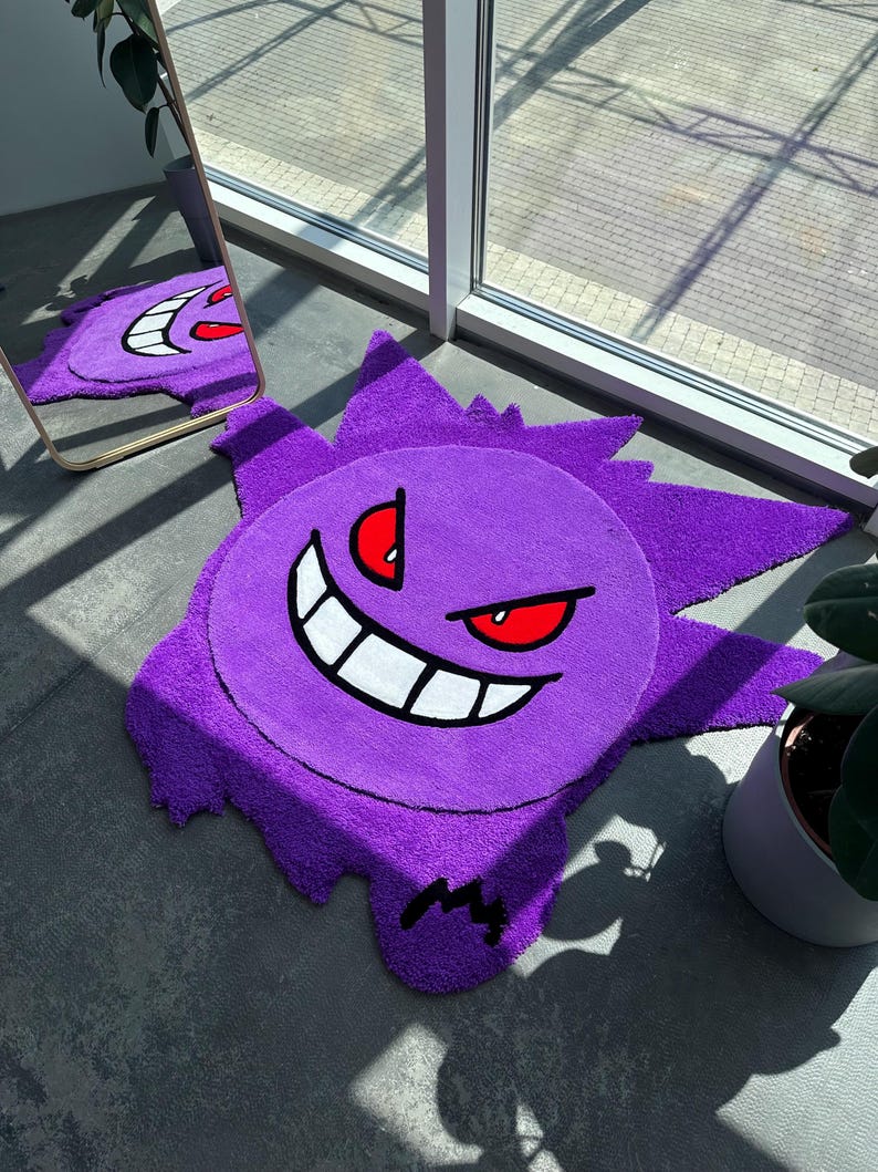 Cartoon Gengar Isnpired X-Ray Handmade Rug, Double Layered Custom Rug.