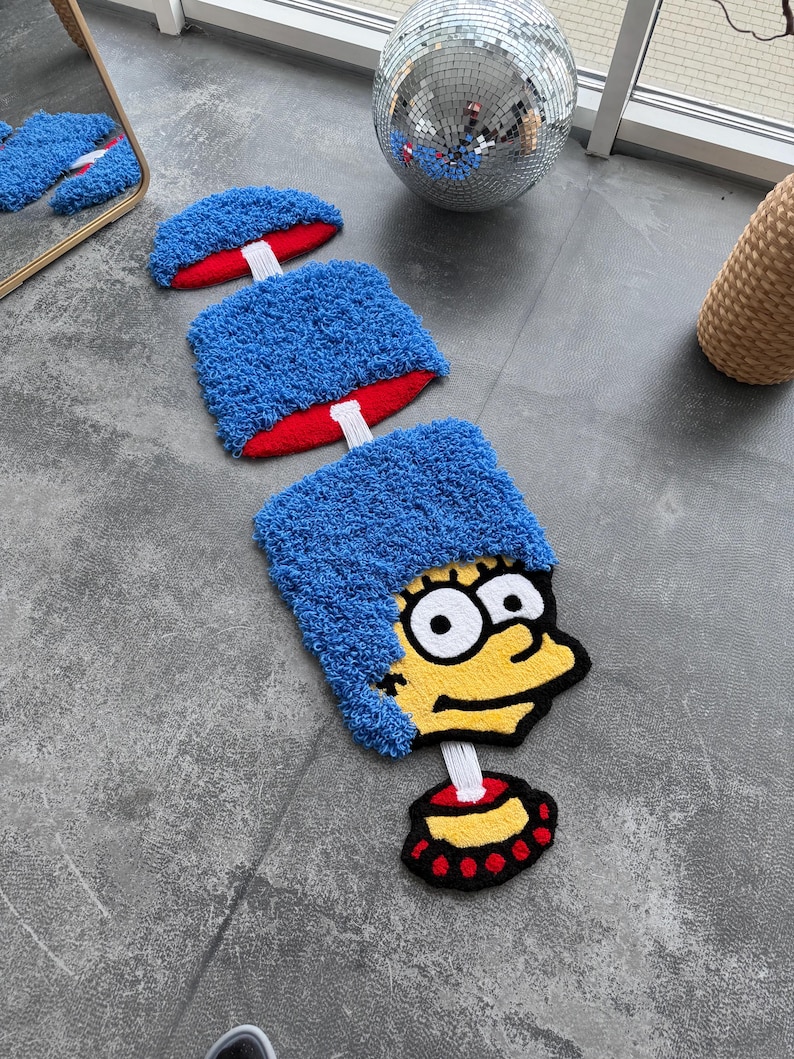 Cartoon Mom Inspired Tufted Rug, Blue-Haired Mom Handmade Rug, Unique Decor For Your Room.