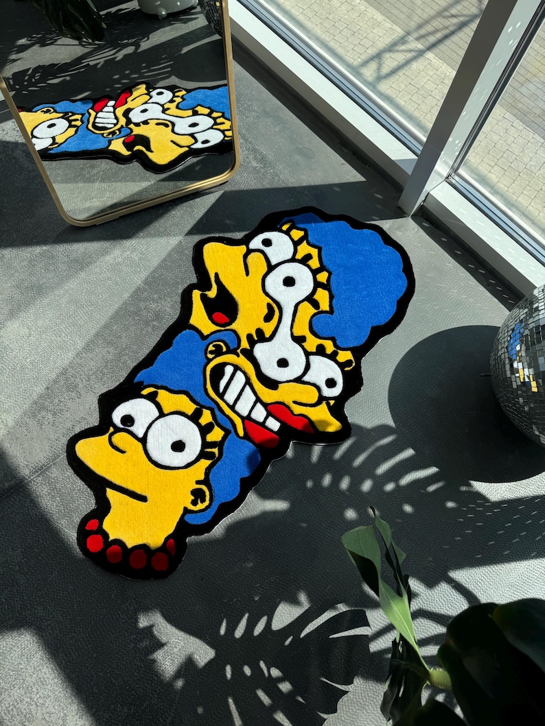 Cartoon Inspired Blue-Haired Mom Tufted Rug, Handmade Cartoon Carpet, Unique Room Decor Rug.