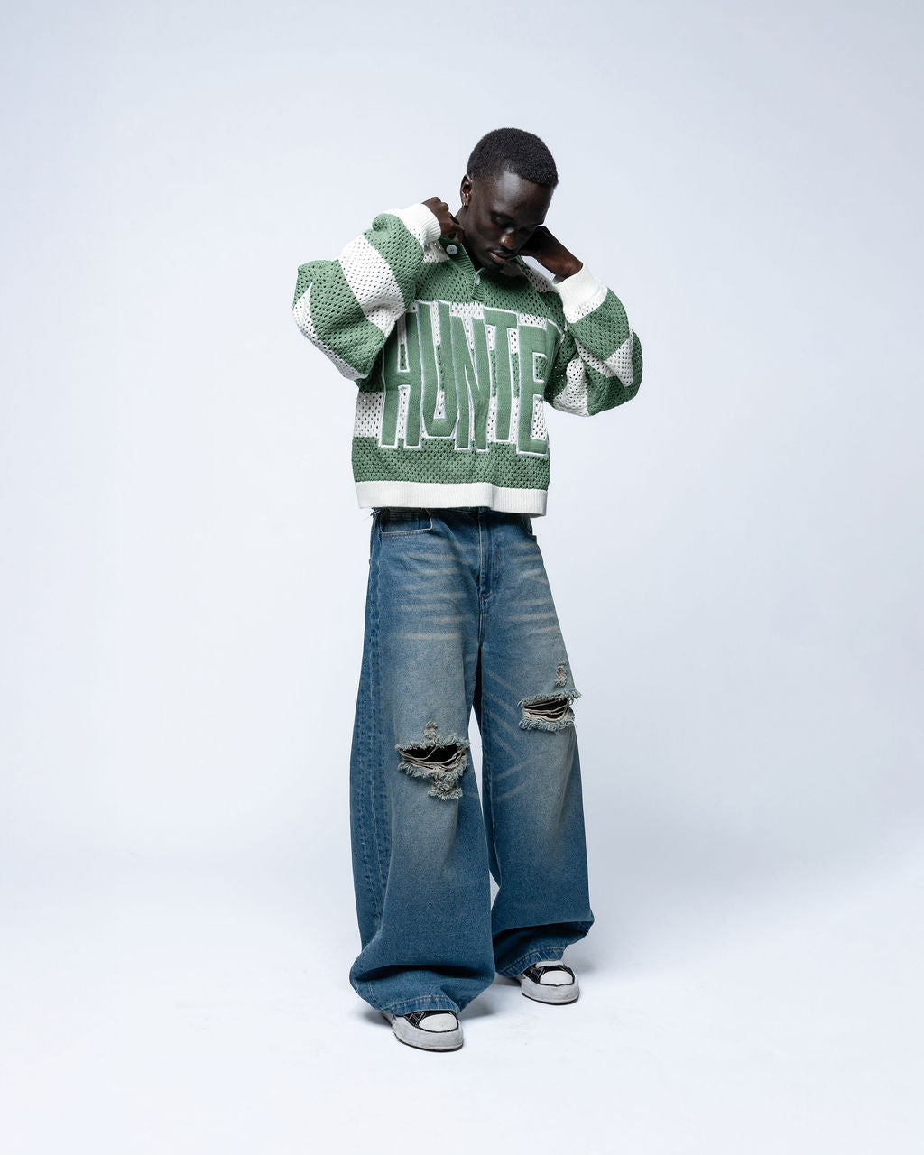 Hunter Inspired Mesh knits, light-weight, with a comfortable boxy fit.