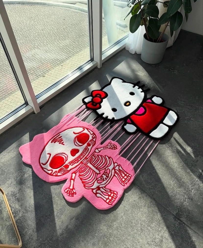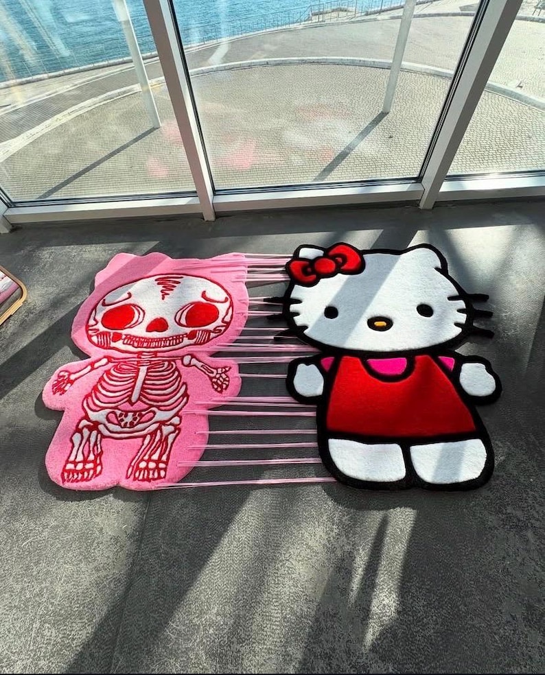 Kawaii Kitty Cartoon Inspired X-Ray Rug, Cute Cat Double Layered Custom Rug, Unique Room Decor.