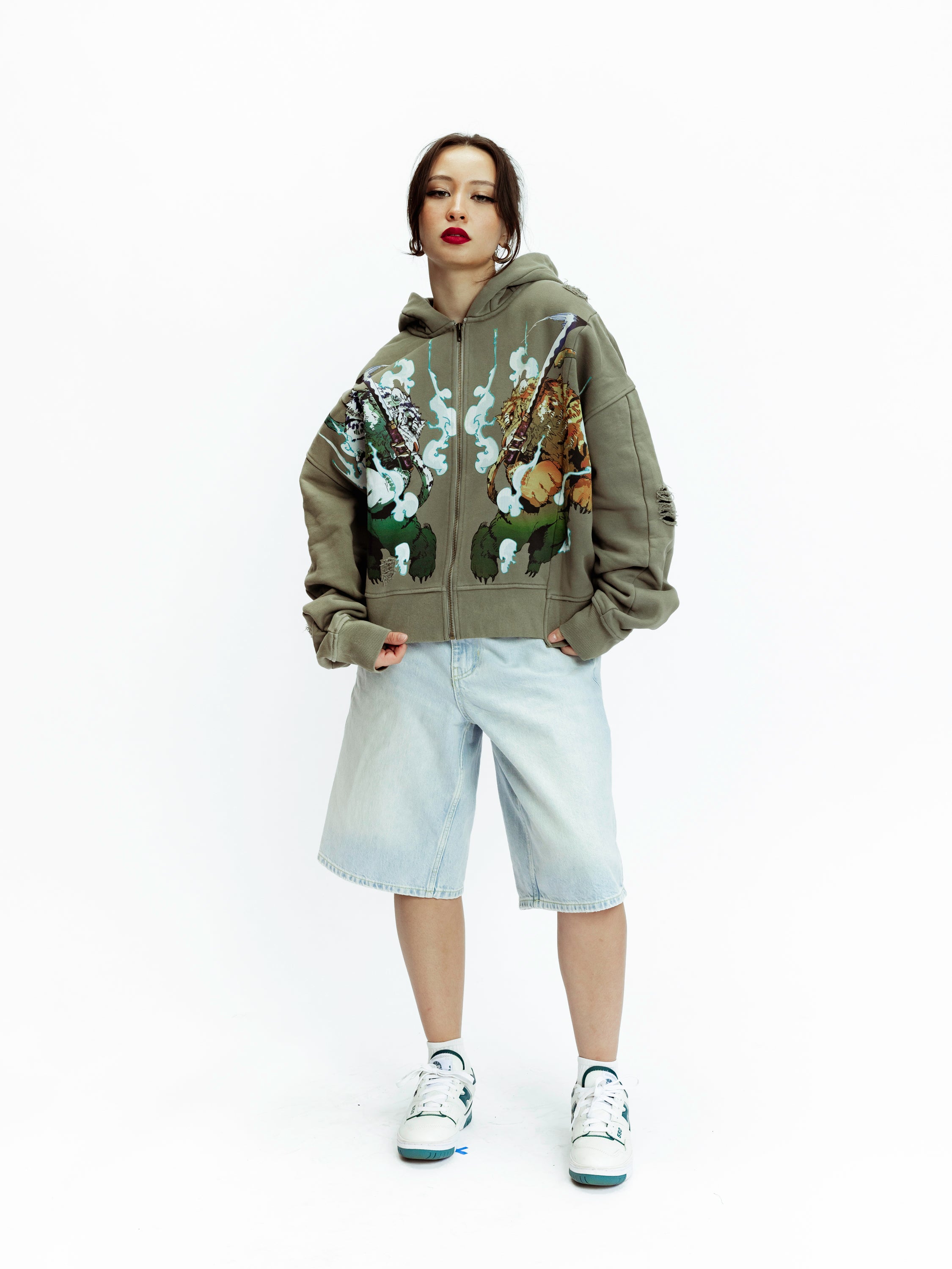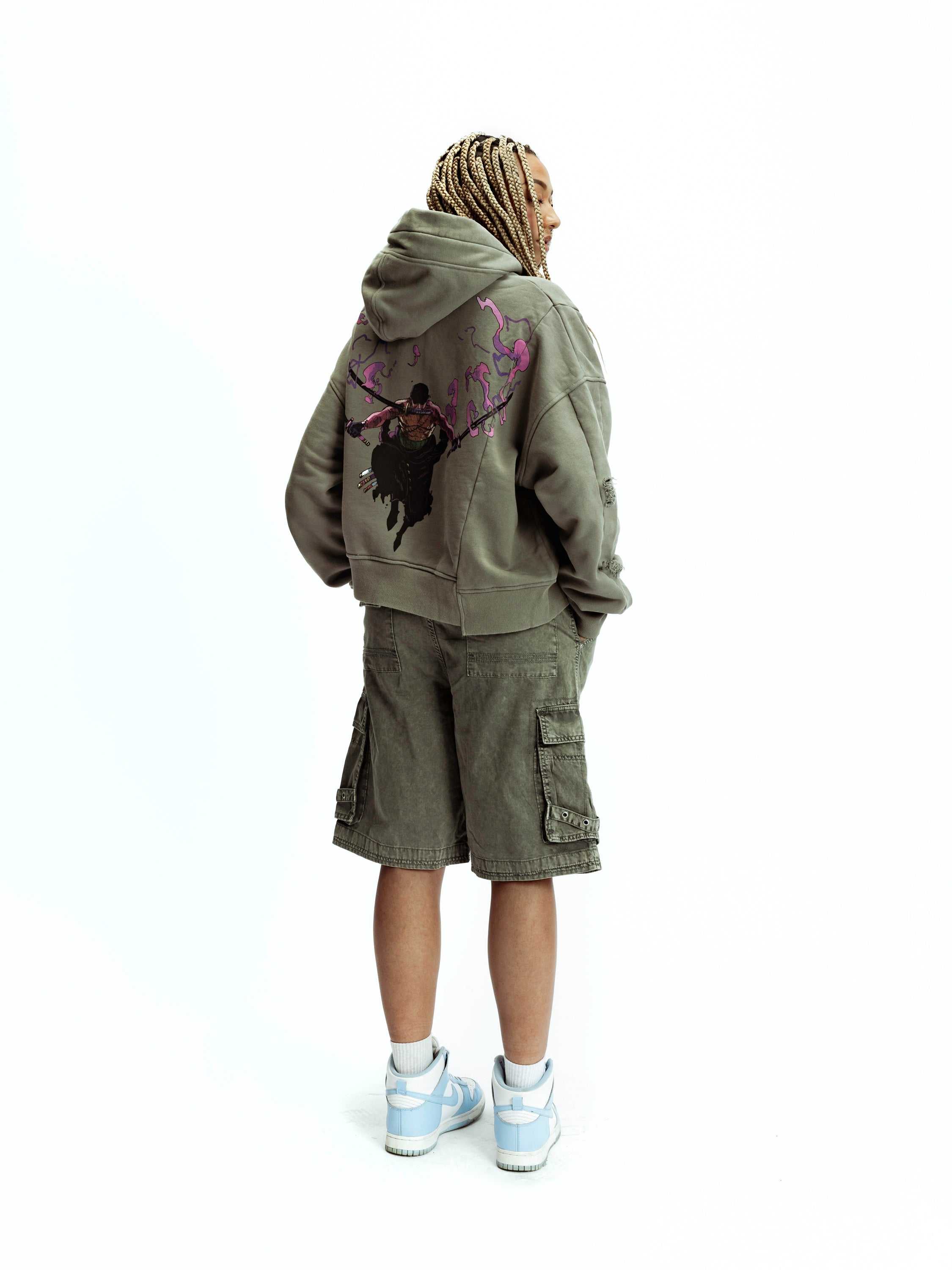 Inspired by the Samurai with no sense of direction. This hoodie features different cuts and three different lengths. Stemming form the body to the length and the hood.