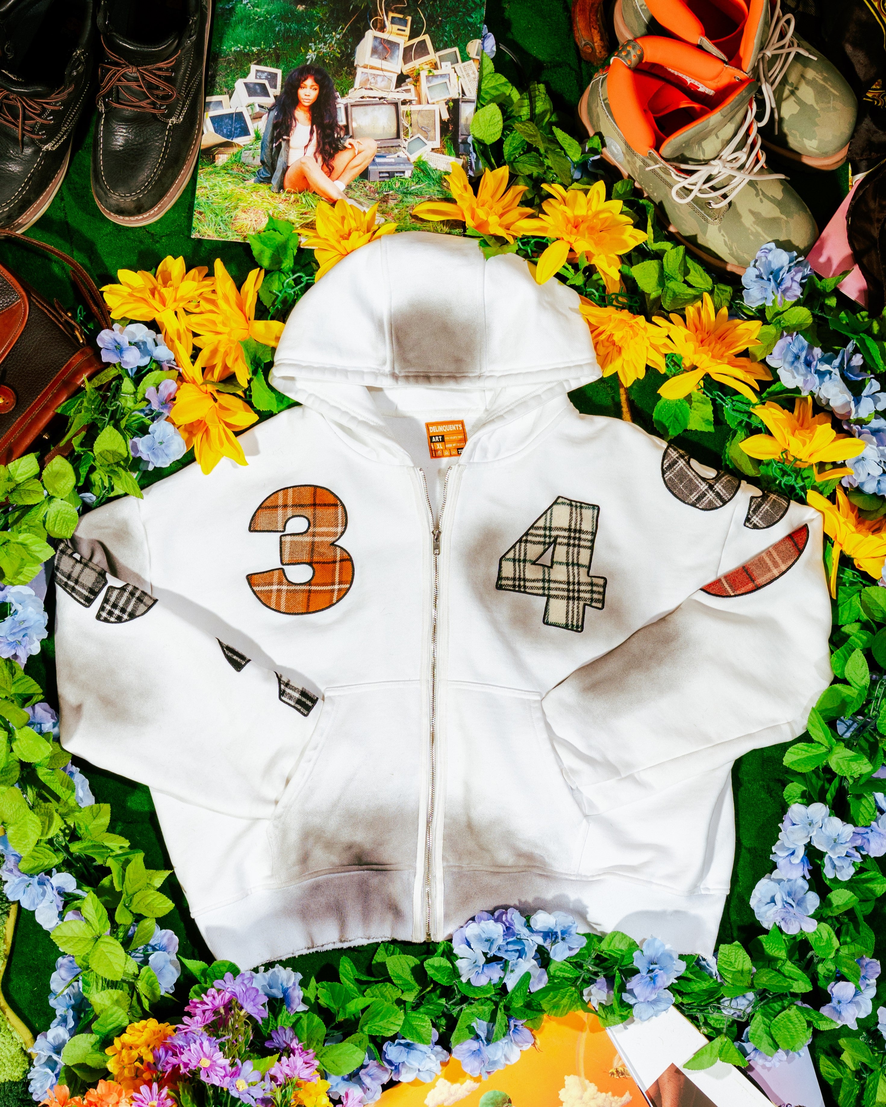 - Applique embroidered plaid work