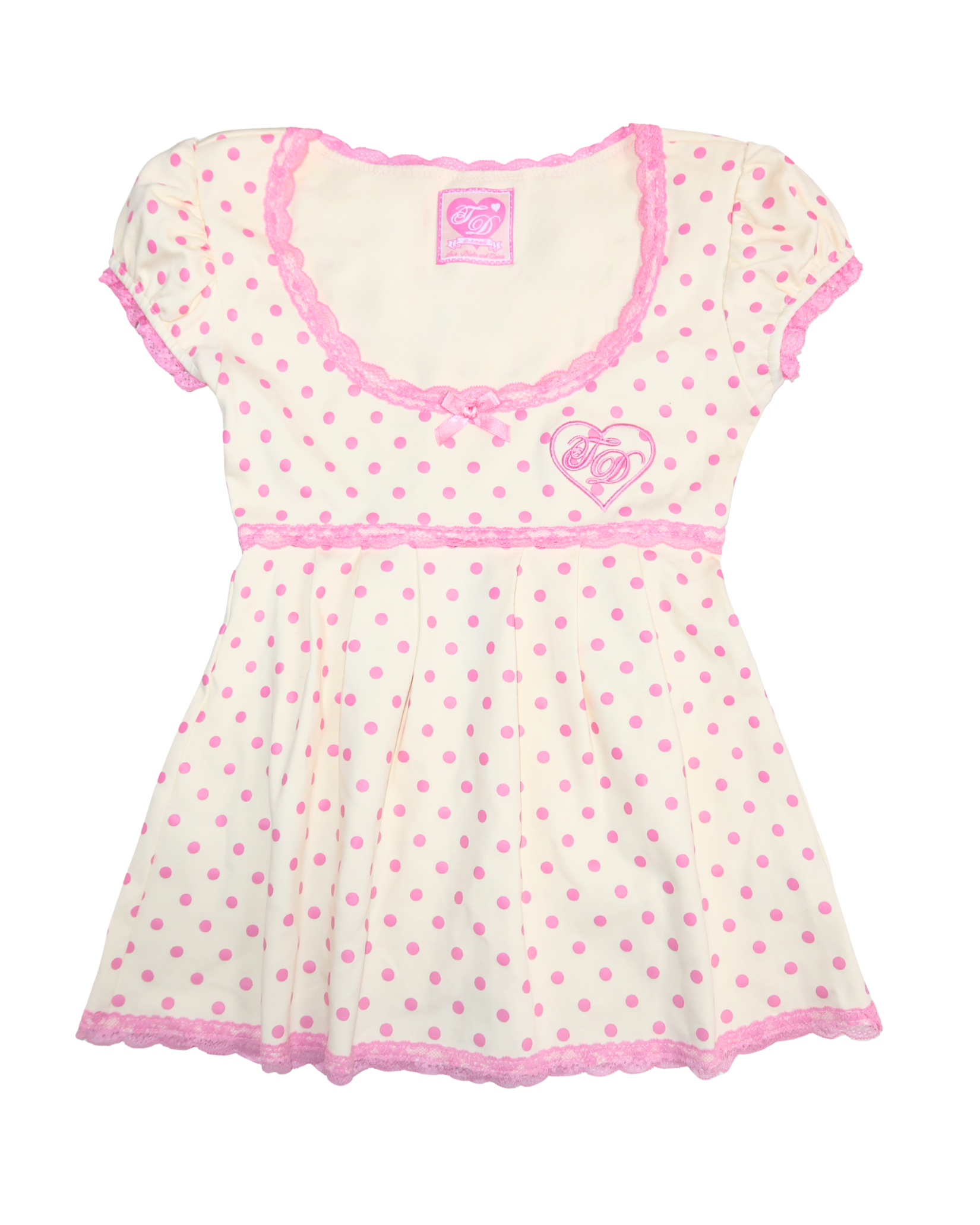 Our scoop neck babydoll top now with puff sleeves in our Pink Lemonade polka dot! ♡