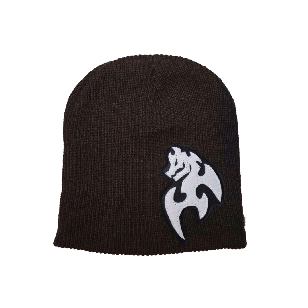 Archivebrand.jp beanie with dragon felt on the right side, along with brand's tag on the back right